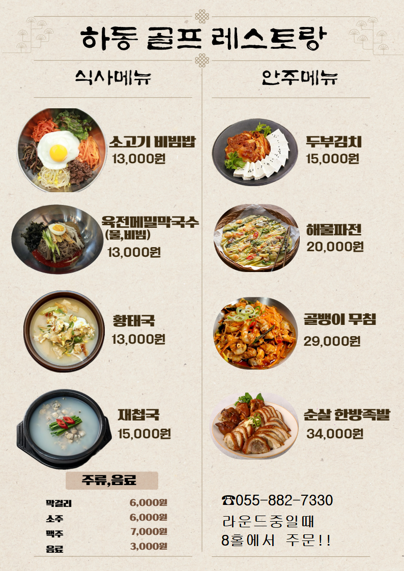 하동CC 레스토랑(그늘집) 식사 및 안주 메뉴